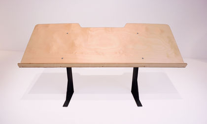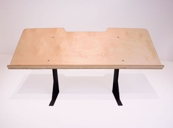 This table features a cutout for built-in mixers, allowing the use of the optional Urei mixer bracket to create a functional and comfortable booth environment. When used with the CDJ tray, it provides a seamless workflow for both analog and digital setups.